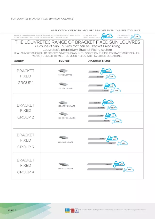Range of Bracket Fixed Louvres - Design Manual Pgs 10.5.10-10.5.11